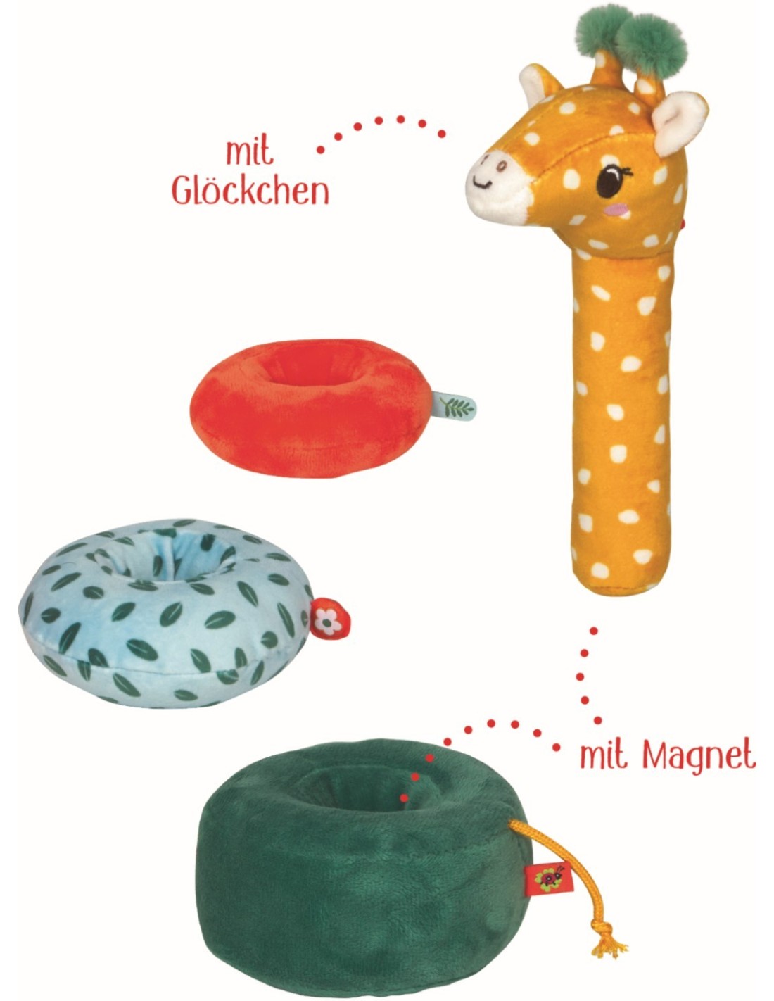 met belletje, applicatie en borduurwerk ca. 11 x 20 cm