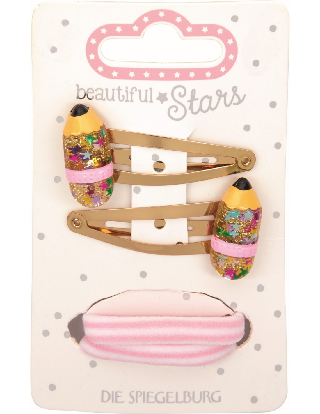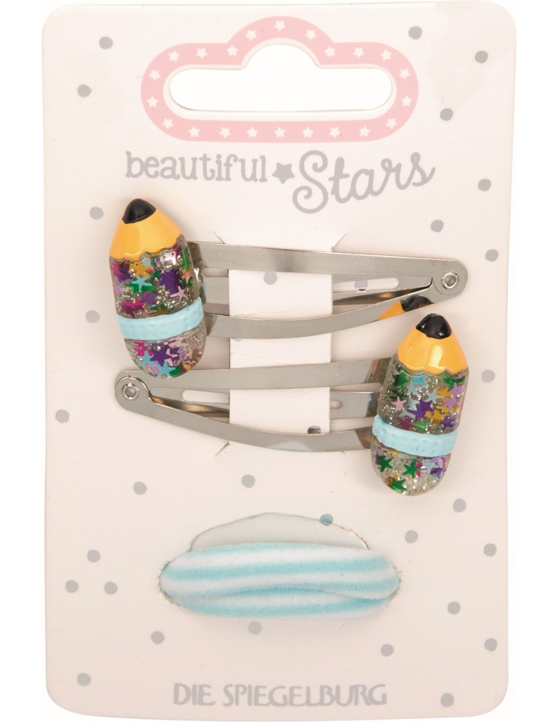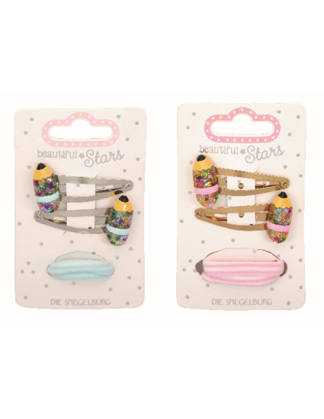 2 designs / set of 2 hair clips and 2 hair ties / with glitter