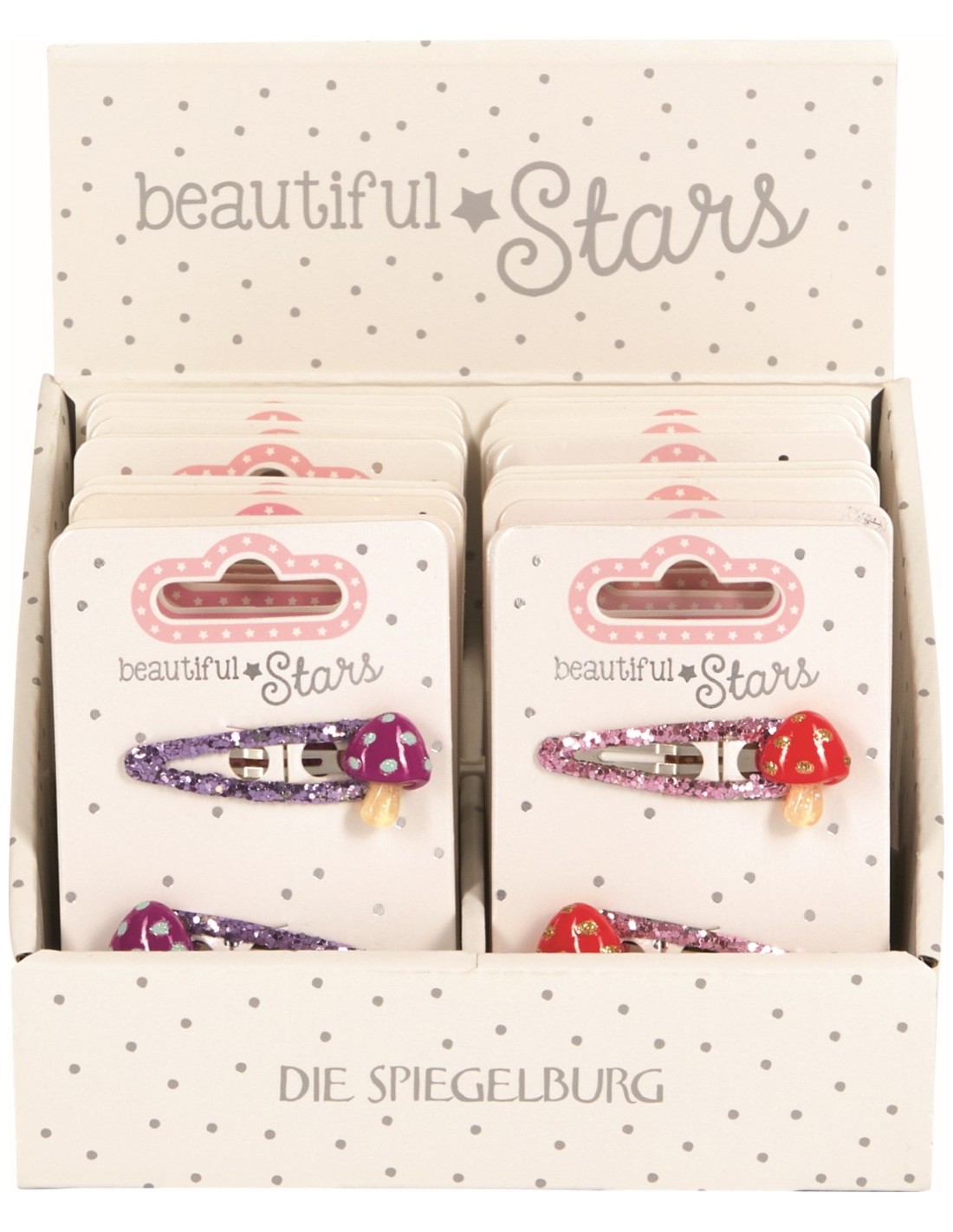 Niemand kan deze magische haarspeldjes weerstaan! De set bestaat uit twee glinsterende haarspeldjes met een paddenstoelmotief – voor diverse kapsels. Een magisch cadeautje voor in de schoen, de adventskalender of een andere feestelijke gelegenheid.