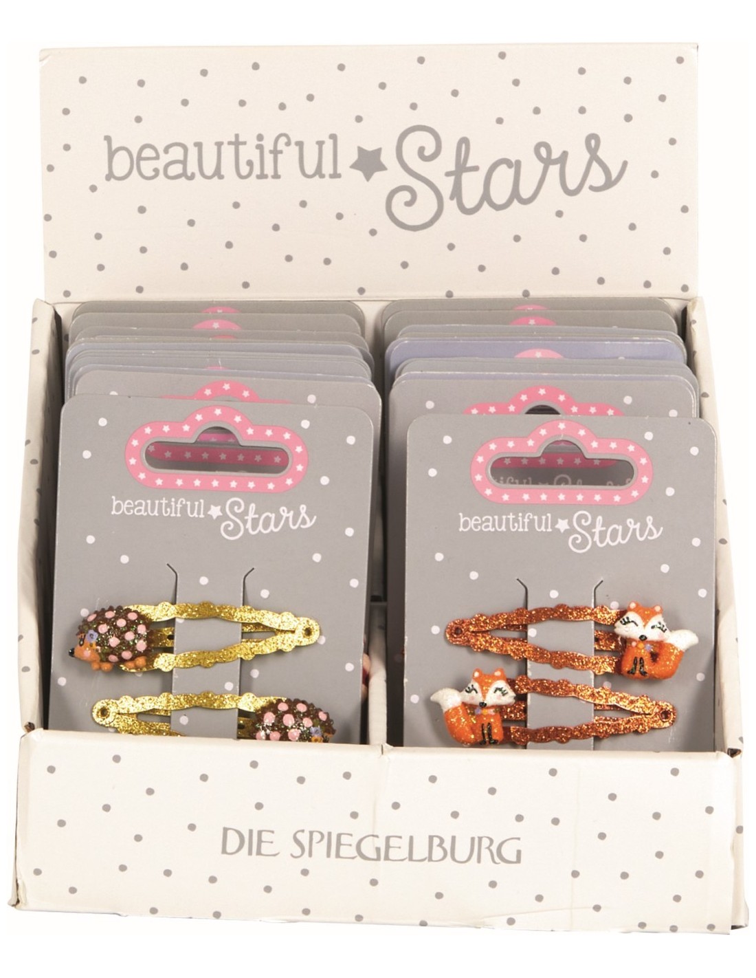 Sieraden, HaarmodeOf het nu voor dagelijks gebruik is of voor speciale gelegenheden, de haarspelden Hertje, Egel of Vos van Die Spiegelburg vormen met hun schattige motieven een bijzonder detail voor elk kapsel. Met een lengte van ongeveer 5 cm zijn ze comfortabel om te dragen en houden ze de lokken stevig bij elkaar.