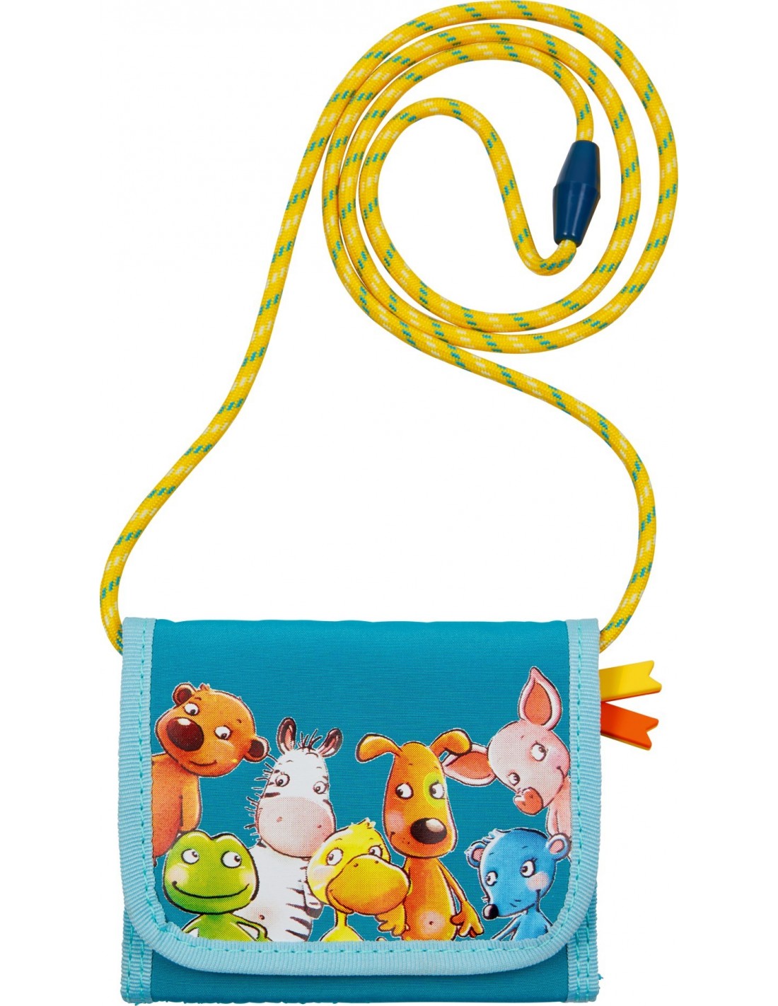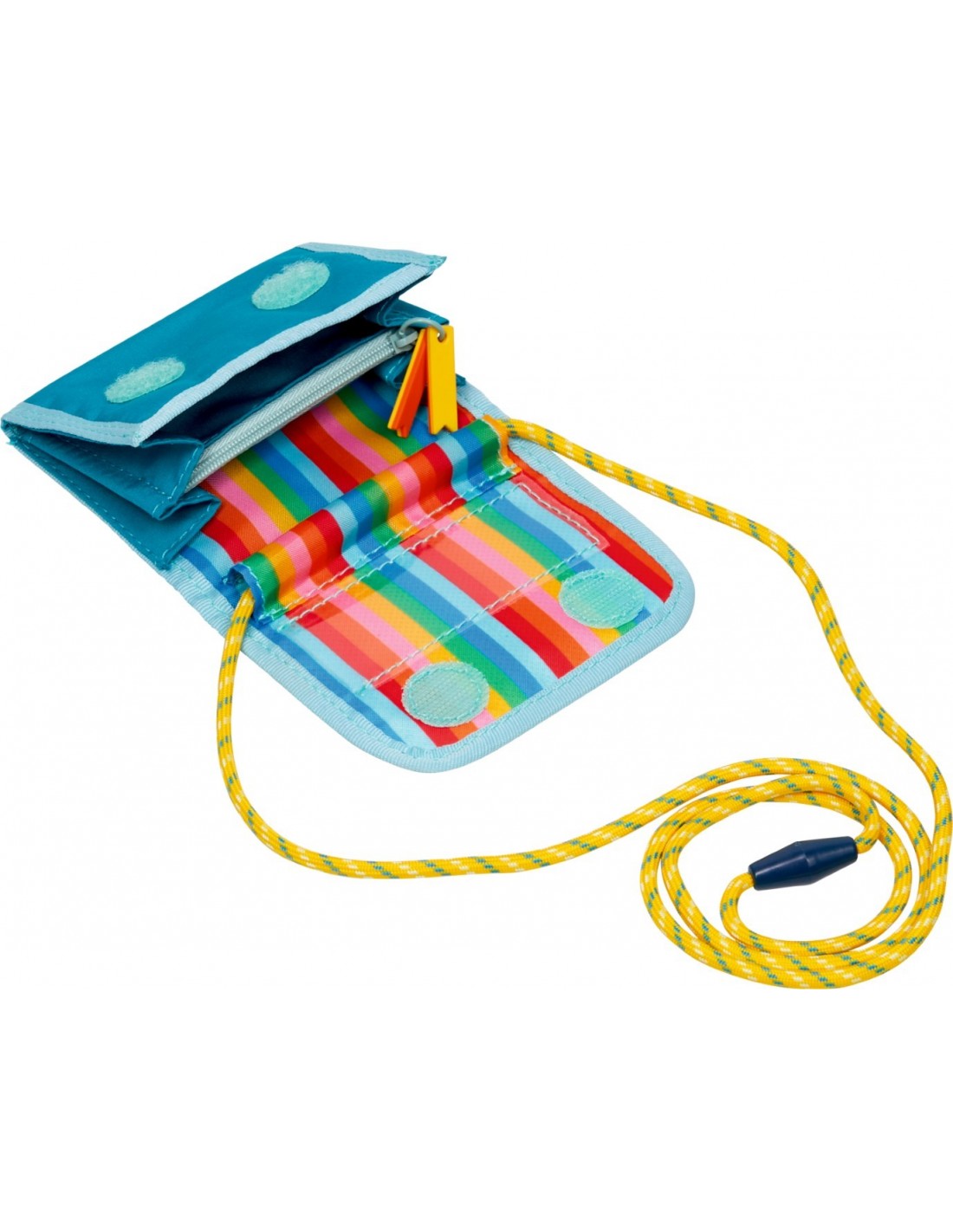 Dit praktische tasje van gerecycled polyester is dankzij het afneembare koord ook te gebruiken als portemonnee. Met verschillende vakjes waarvan één afsluitbaar met rits.
