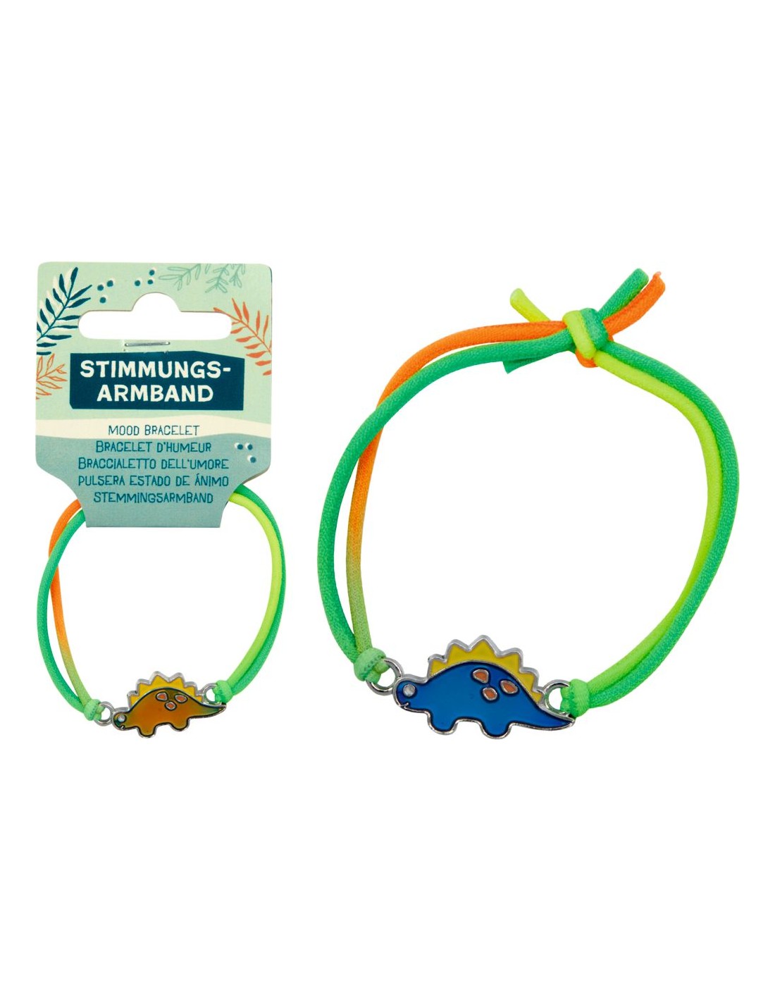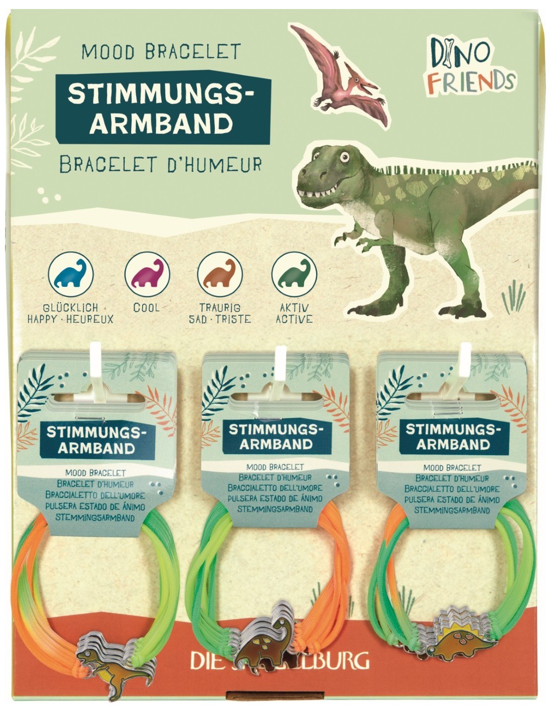Een armband met een verrassende twist! De Dino Friends stemmingsarmband van Die Spiegelburg heeft een dinosaurusbedeltje dat van kleur verandert afhankelijk van je stemming. De elastische band past comfortabel om elke pols. Verkrijgbaar in 3 designs.