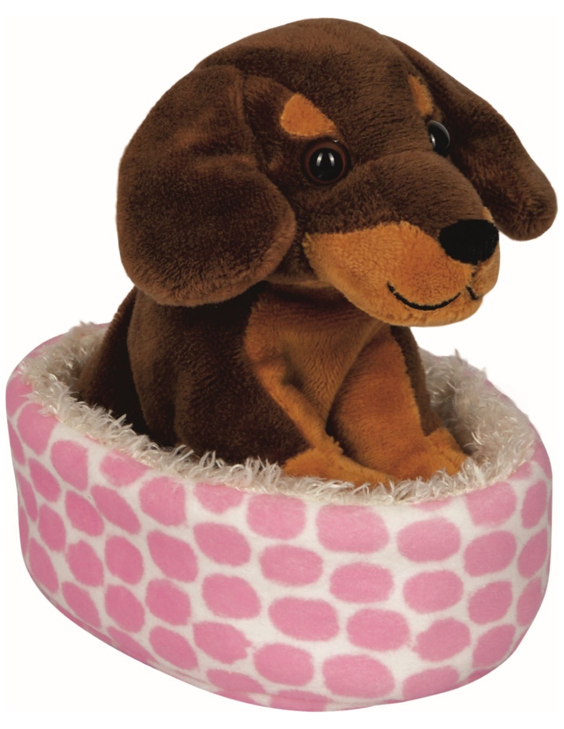 Knuffeltje hond in mandje ca. 13 x 14 x 10 cm