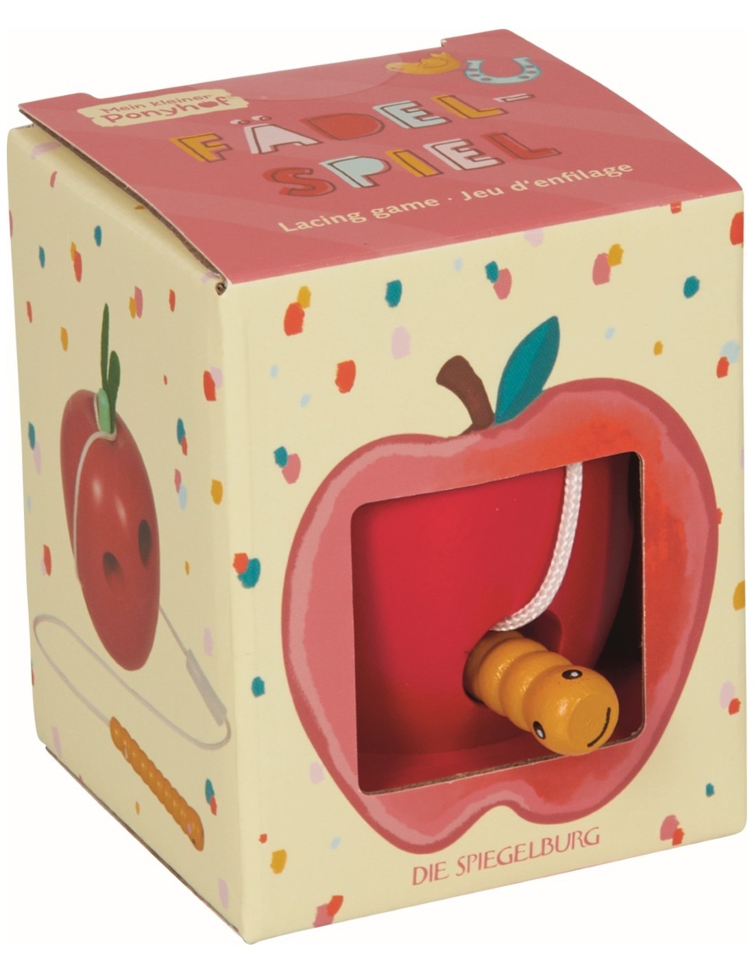 ToysDit schattige rijgspel van Die Spiegelburg biedt kleine paardenliefhebbers creatief en leerzaam speelplezier. De liefdevol vormgegeven appel van hout en vilt laat kinderen spelenderwijs hun fijne motoriek oefenen terwijl ze het wormpje door de gaatjes rijgen. De praktische connector aan het touwtje zorgt ervoor dat het touwtje niet in de knoop raakt – ideaal voor zorgeloos spelen! Met een totale lengte van ongeveer 40 cm en een appeldiameter van ongeveer 6,5 cm past deze handige set perfect in kleine kinderhandjes en is hij gemakkelijk op te bergen. Robuust en hoogwaardig, gemaakt van natuurlijke materialen zoals hout en vilt, is dit rijgspel ideaal om er thuis of onderweg mee te spelen.