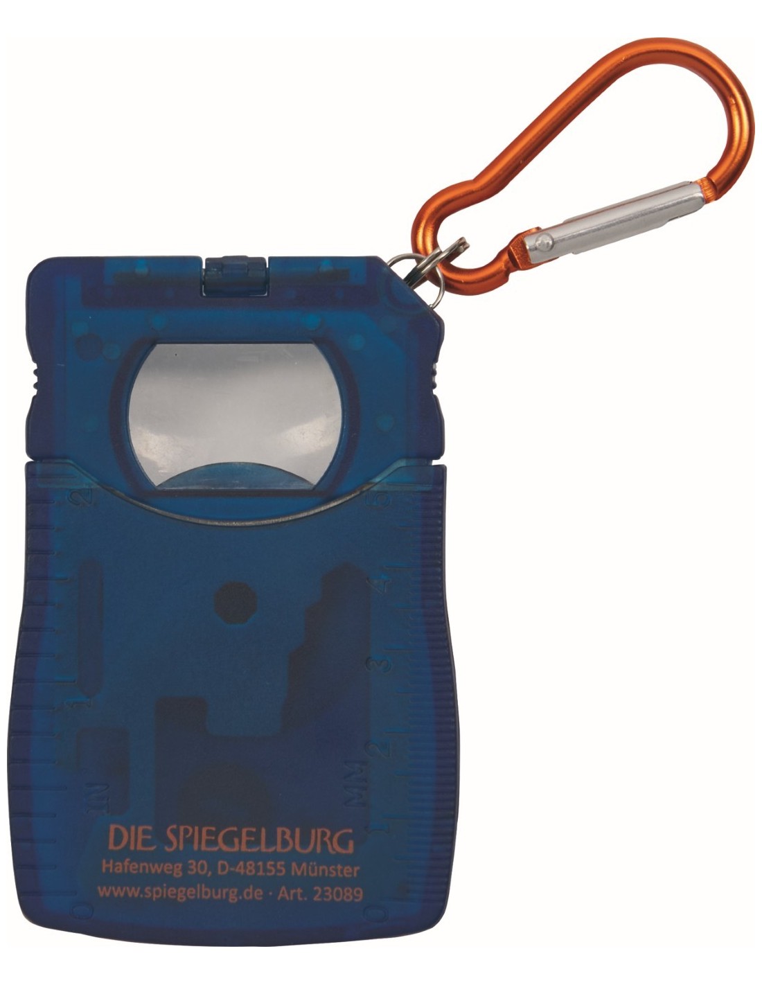 Met karabijnhaak en 12 functies ca. 9 x 5,5 x 0,5 cm
