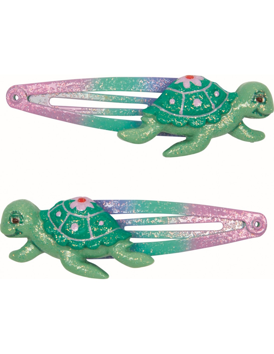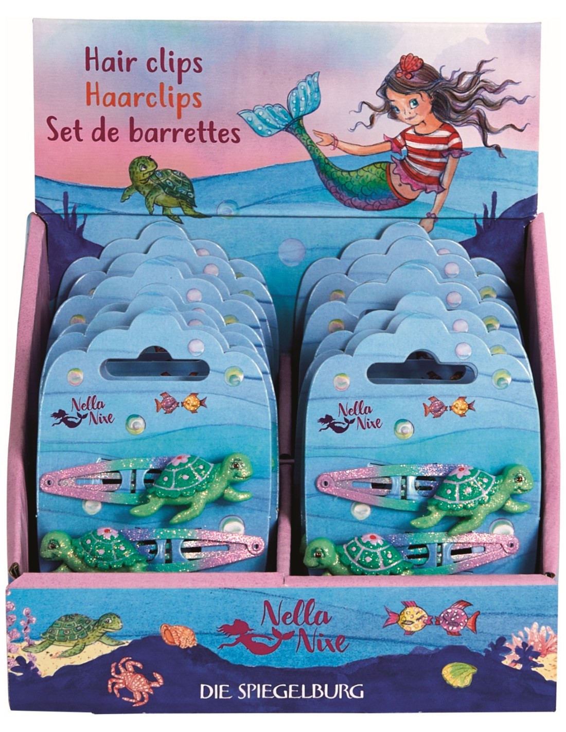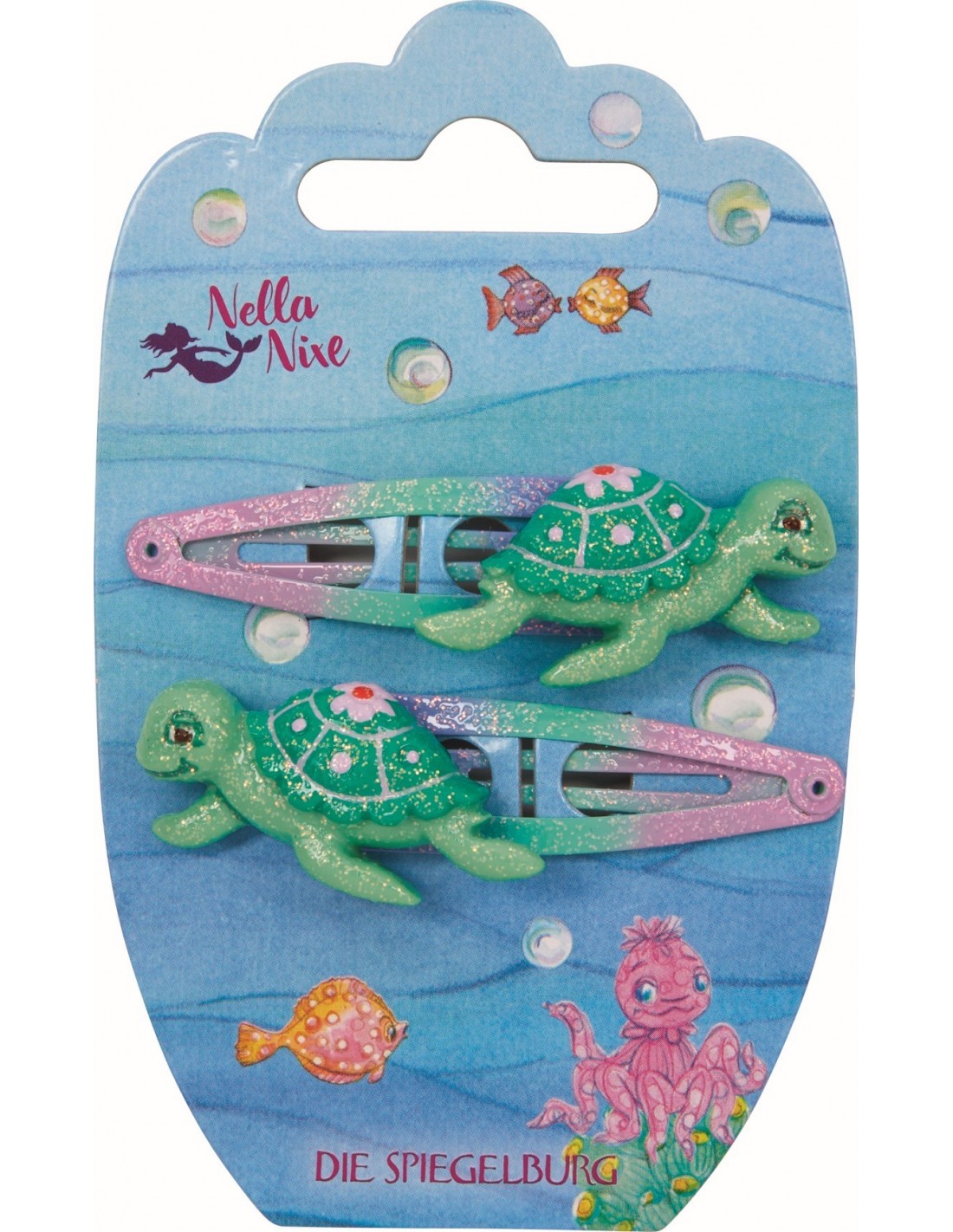 Niemand kan deze glinsterende haarspeldjes uit de zeemeermin-wereld van Nella Nixe weerstaan! De set bestaat uit twee modieuze haarspeldjes met een glinsterend schildpadfiguurtje voor magische kapsels.
