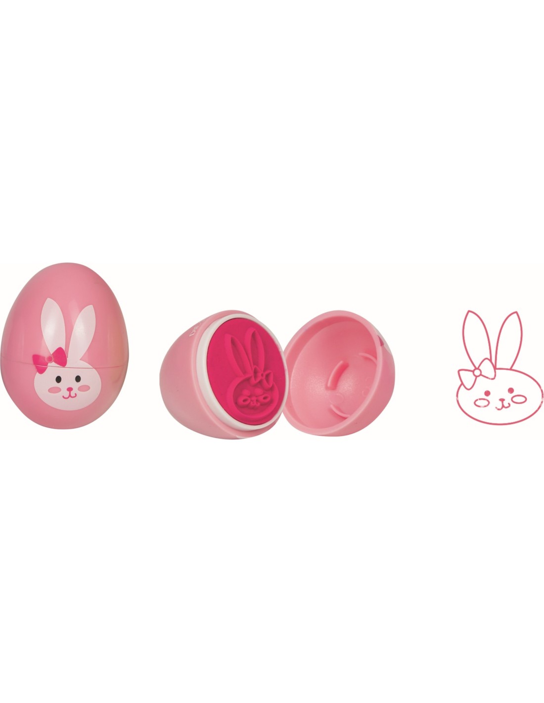4 designs in display / eivormige stempels met geïntegreerde inkt (geel, roze, blauw en groen) / gemaakt van plastic