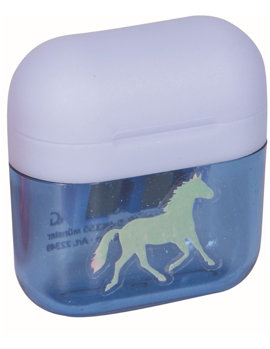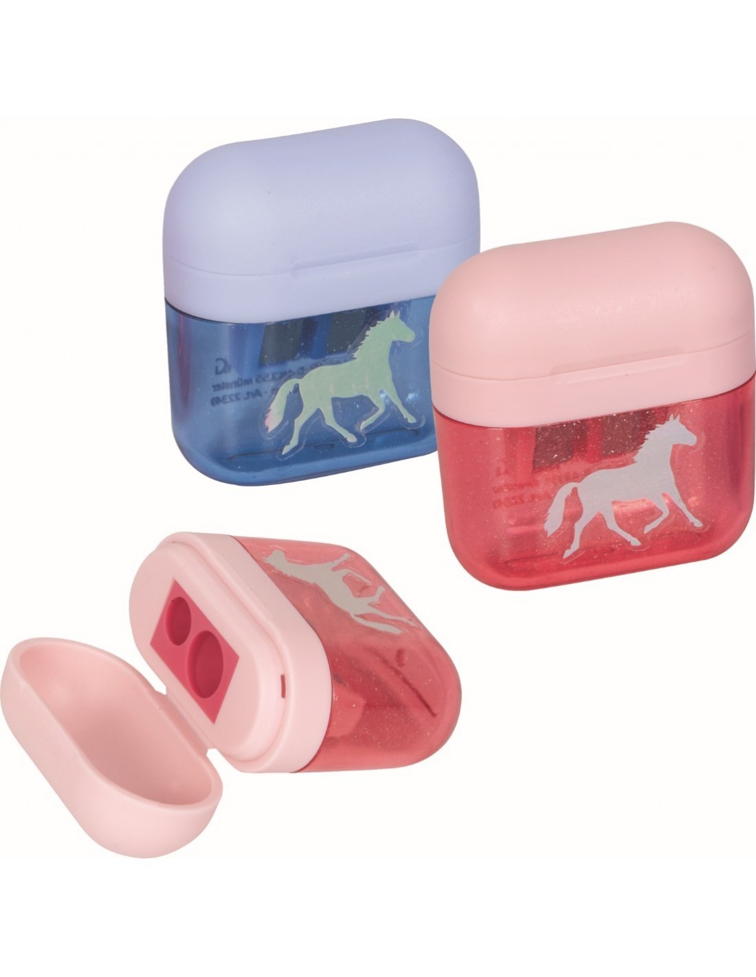 two sharpeners in plastic container / suitable for thick, thin and triangular pencils / with sealing flap
