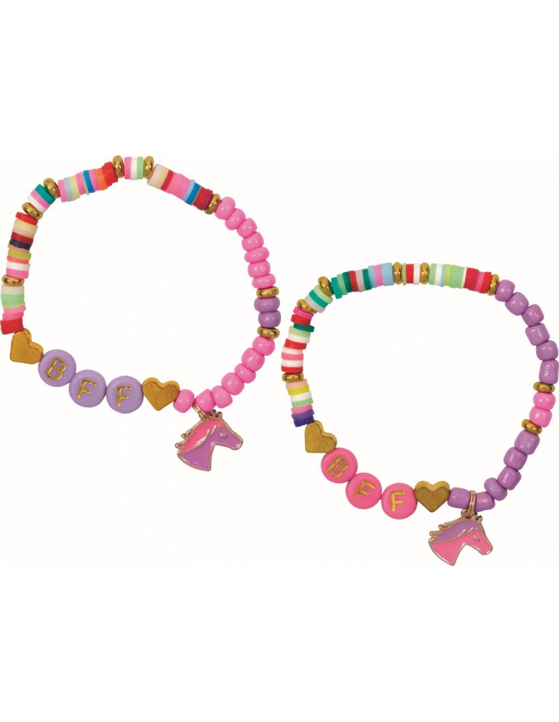 Set of 2 elastic friendship bracelets with colourful beads and horse pendant