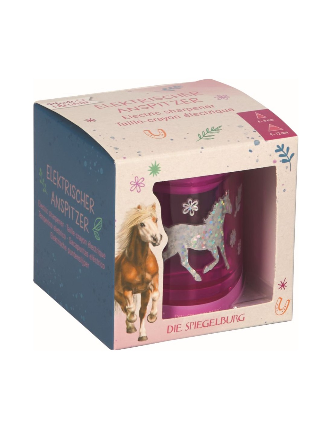 StationeryElektrische puntenslijper uit de "Pferdefreunde"-serie met een holografisch paardenmotief. Slijpt automatisch potloden in twee maten: 6-8 mm en 9-12 mm. Voorzien van een automatische stopfunctie, een veiligheidsklepje voor het grotere gat en een grote puntenslijperhouder. Batterijen (4 x AA) zijn niet inbegrepen. Voor echte paardenvrienden!