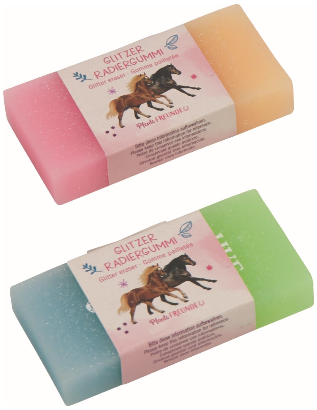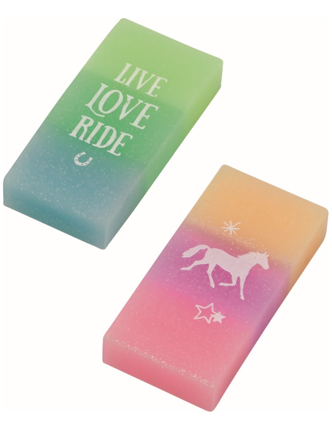 Kleurrijke gummen met kleurverloop en glitter / gemaakt van kunststof / ca. 6,5 x 3 x 1 cm