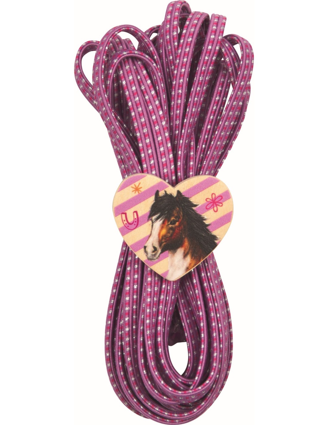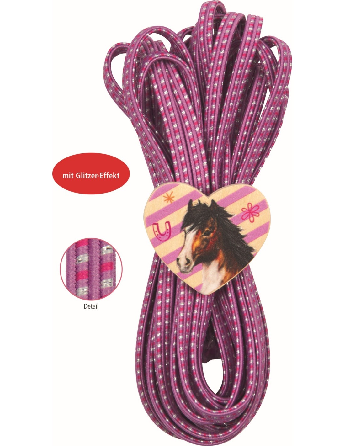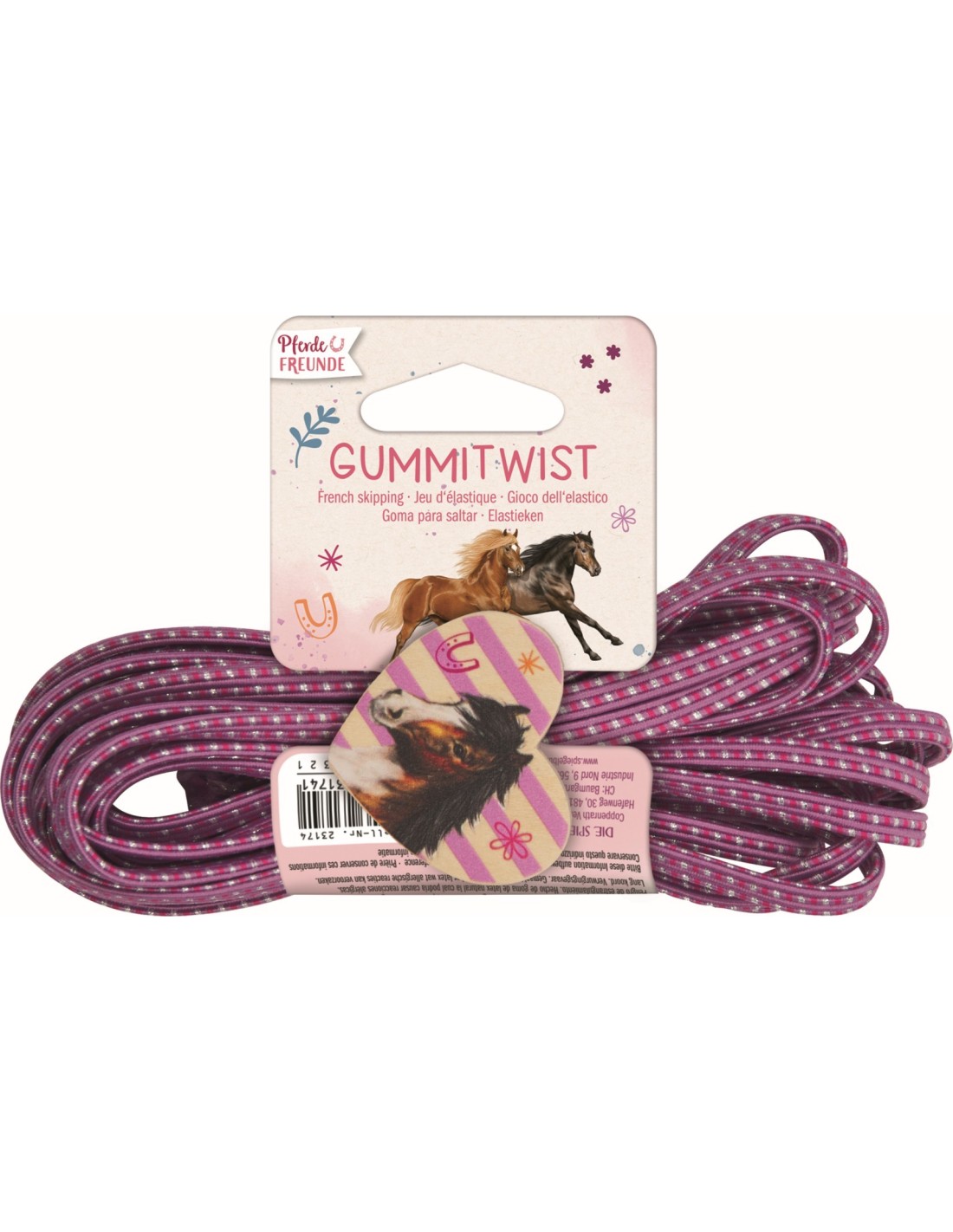 Elastische band voor heel veel springplezier / met bedrukte houten schijf / gemaakt van rubber / Lengte: Elastische band: ca. 500 cm, Breedte: ca. 0,6 cm / Afmetingen opgevouwen: ca. 4 x 15 cm