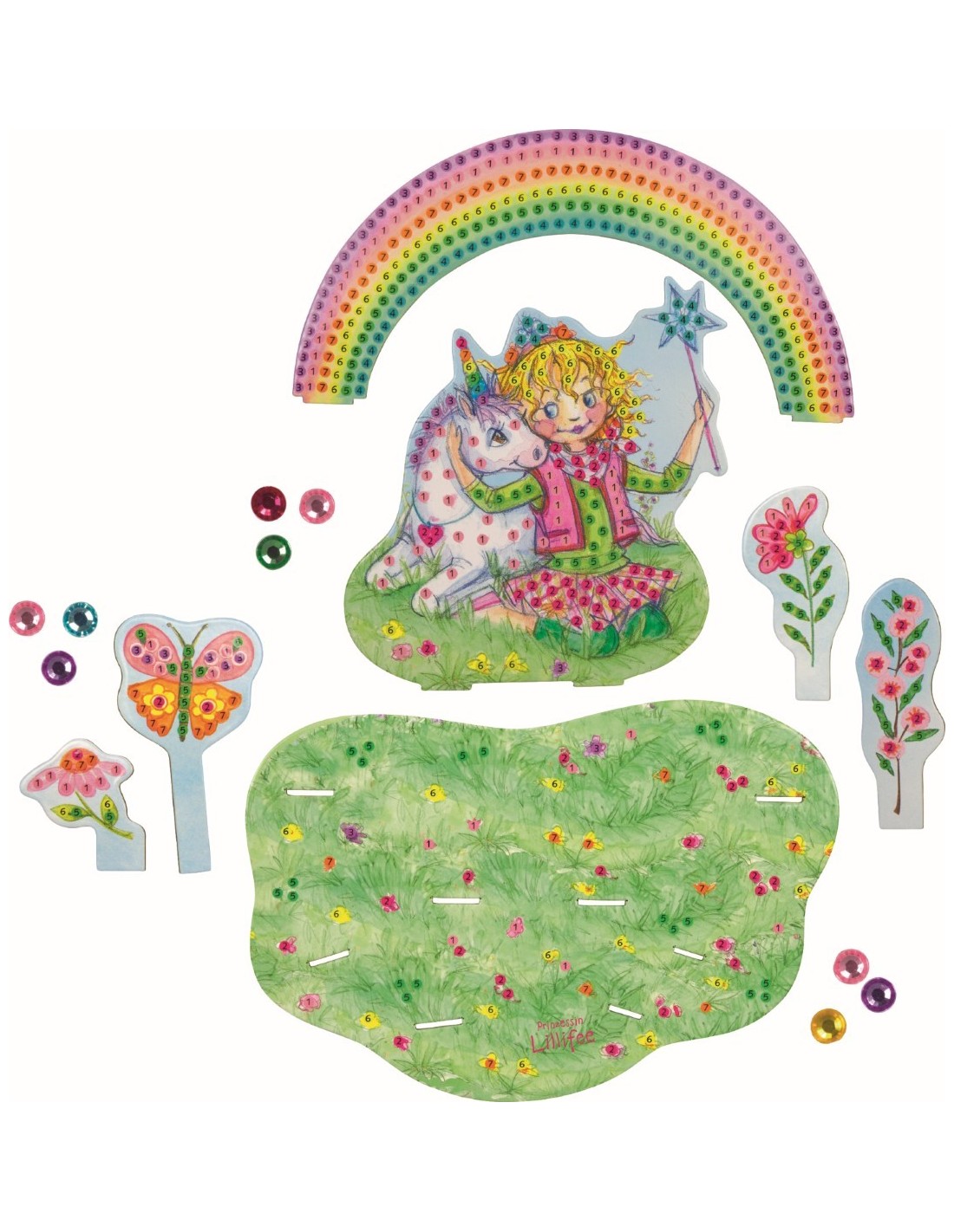 ToysSet van 6 figuurtjes en een basis om de figuurtjes in te steken, ca. 600 diamantjes om aan te brengen, een bakje, een applicatorpen en instructies / de glinsterende diamantjes zijn gemakkelijk aan te brengen op het zelfklevende motief / gemaakt van stevig karton / afmetingen na montage: ca. 22 x 15 x 17 cm