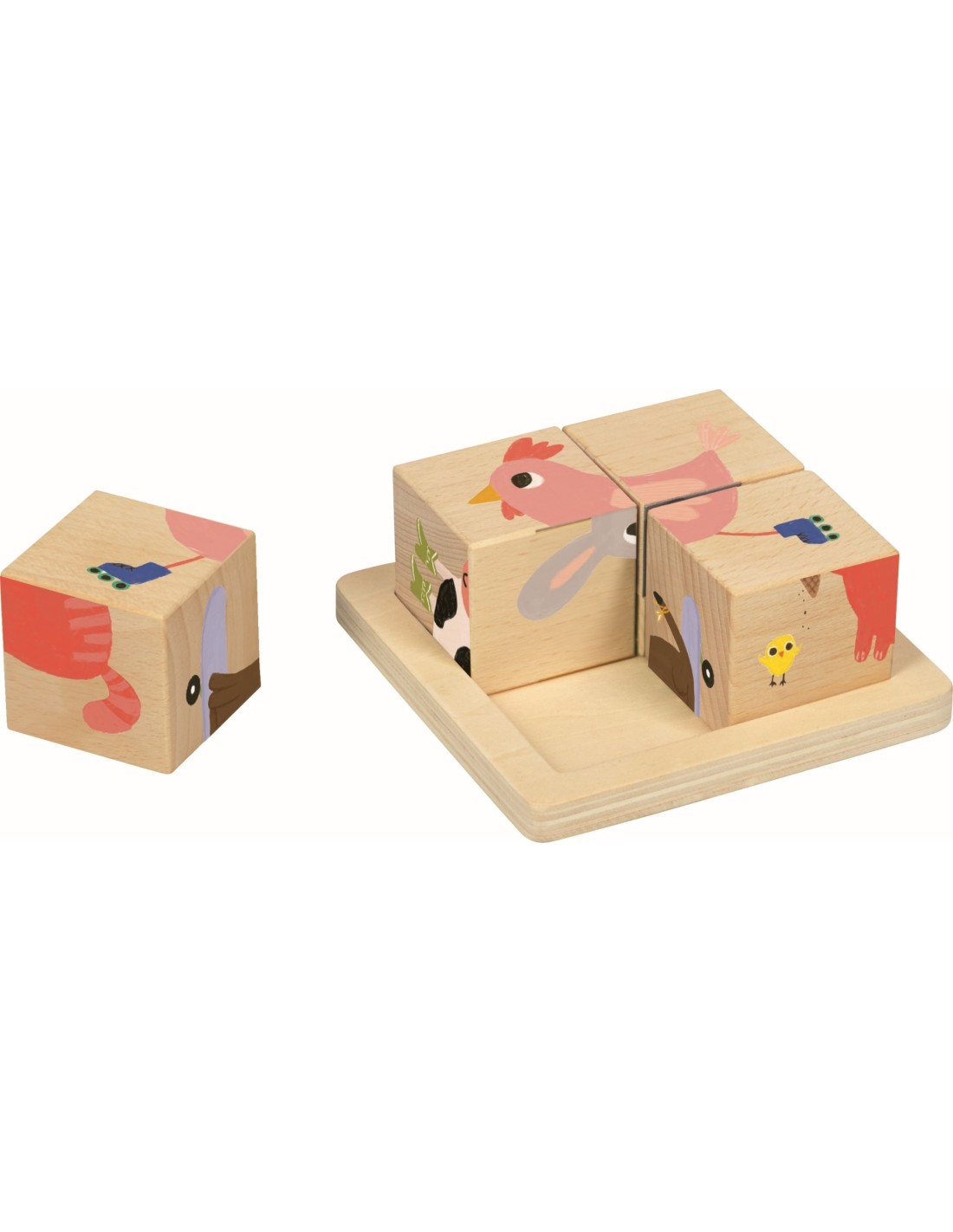 Houten blokpuzzel van 4 blokjes dieren