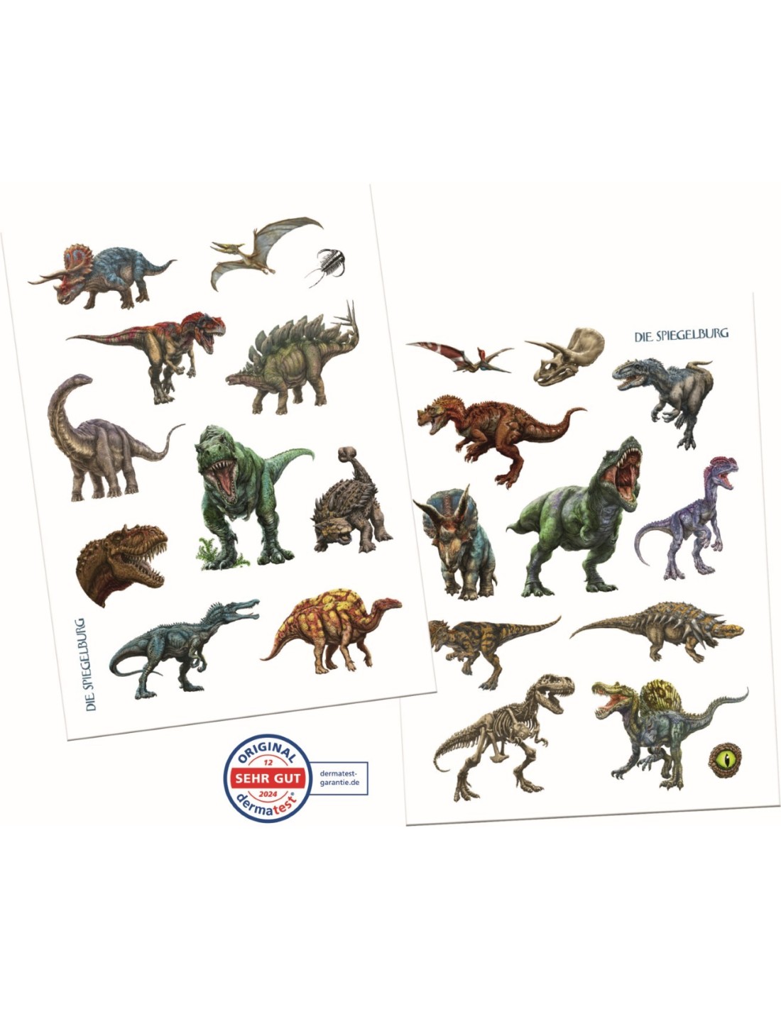 Coole tatoeages met dino's! Makkelijk te gebruiken! Huidvriendelijk, met zeep te verwijderen.