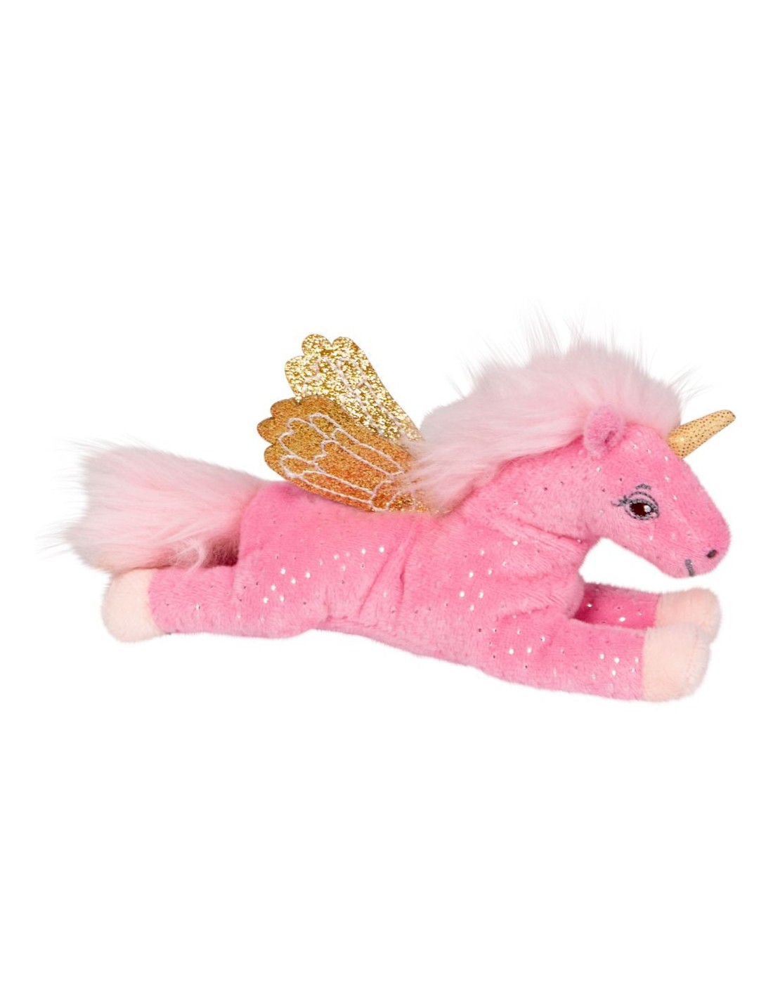 KnuffelsOm mee te spelen en te knuffelen: deze kleine roze eenhoorn van glinsterend pluche is een trouwe metgezel en past perfect in kleine tassen of rugzakken. Met een glinsterende hoorn en glimmende vleugels is hij een welkome aanwinst voor het eenhoornparadijs!