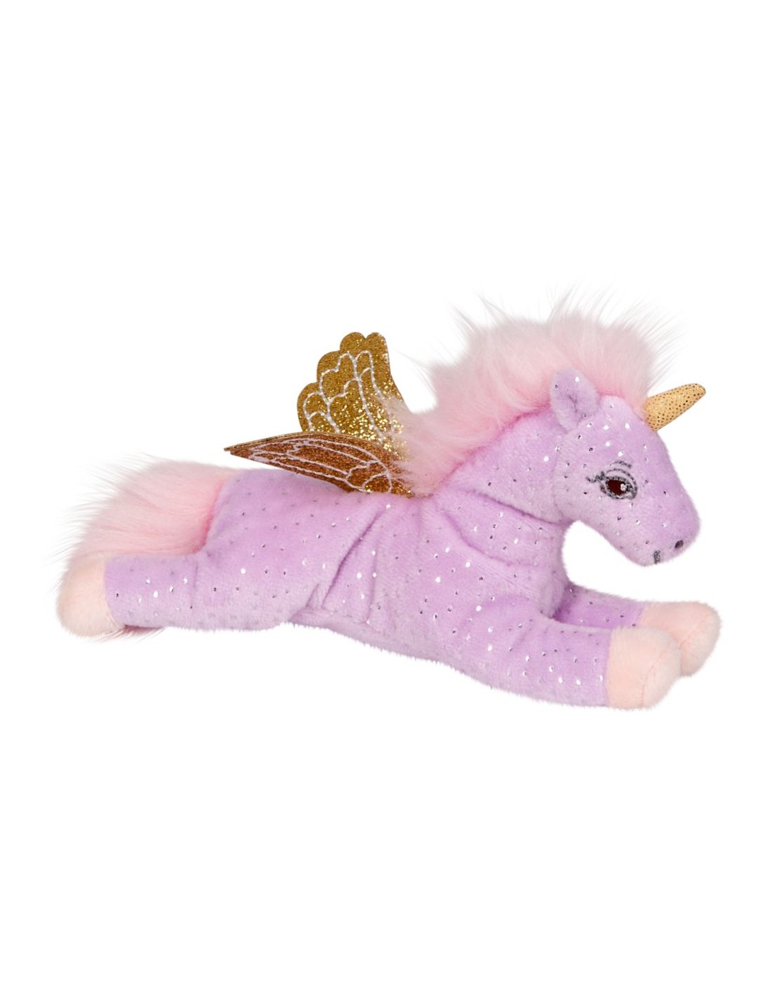 KnuffelsOm mee te spelen en te knuffelen: deze kleine lila eenhoorn van glinsterend pluche is een trouwe metgezel en past perfect in kleine tassen of rugzakken. Met een glinsterende hoorn en glimmende vleugels is hij een welkome aanwinst voor het eenhoornparadijs!