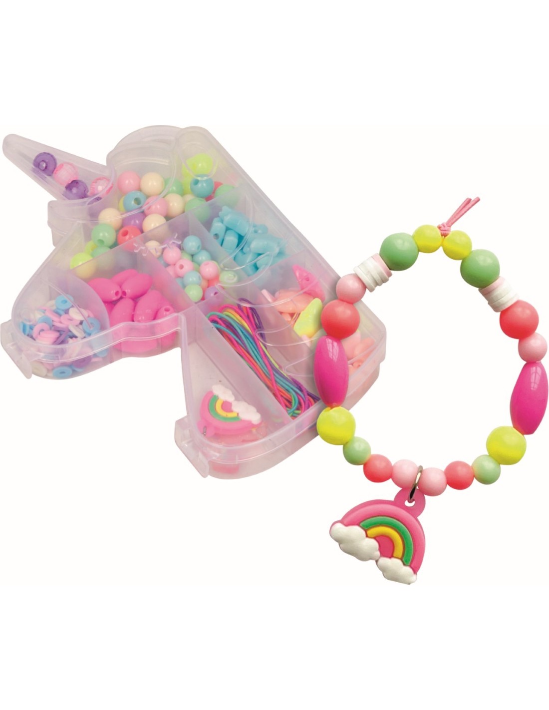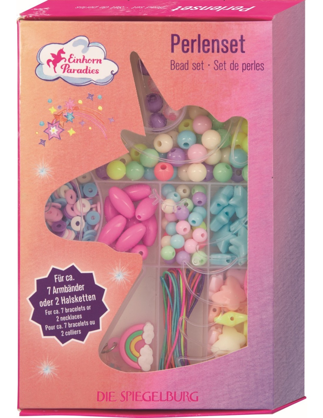 Betoverende sieraden voor kleine eenhoornfans! Met de Unicorn Paradise kralenset van Die Spiegelburg maak je prachtige armbanden en kettingen. 160 kleurrijke kralen, een elastiekje en twee schattige bedeltjes maken elk sieraad uniek. De set wordt geleverd in een compact doosje van ongeveer 10 x 16 x 2,5 cm – perfect om mee te nemen of cadeau te geven!