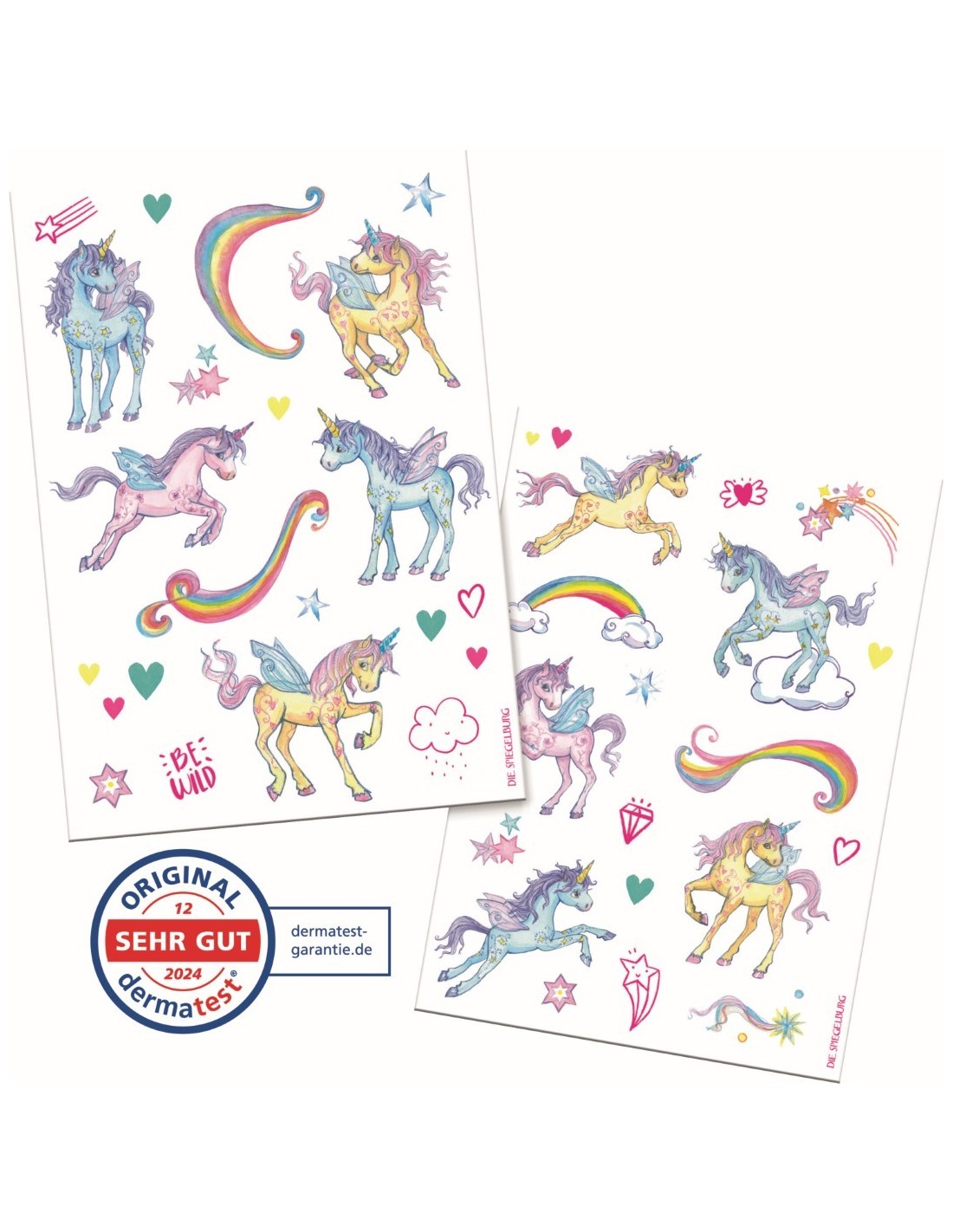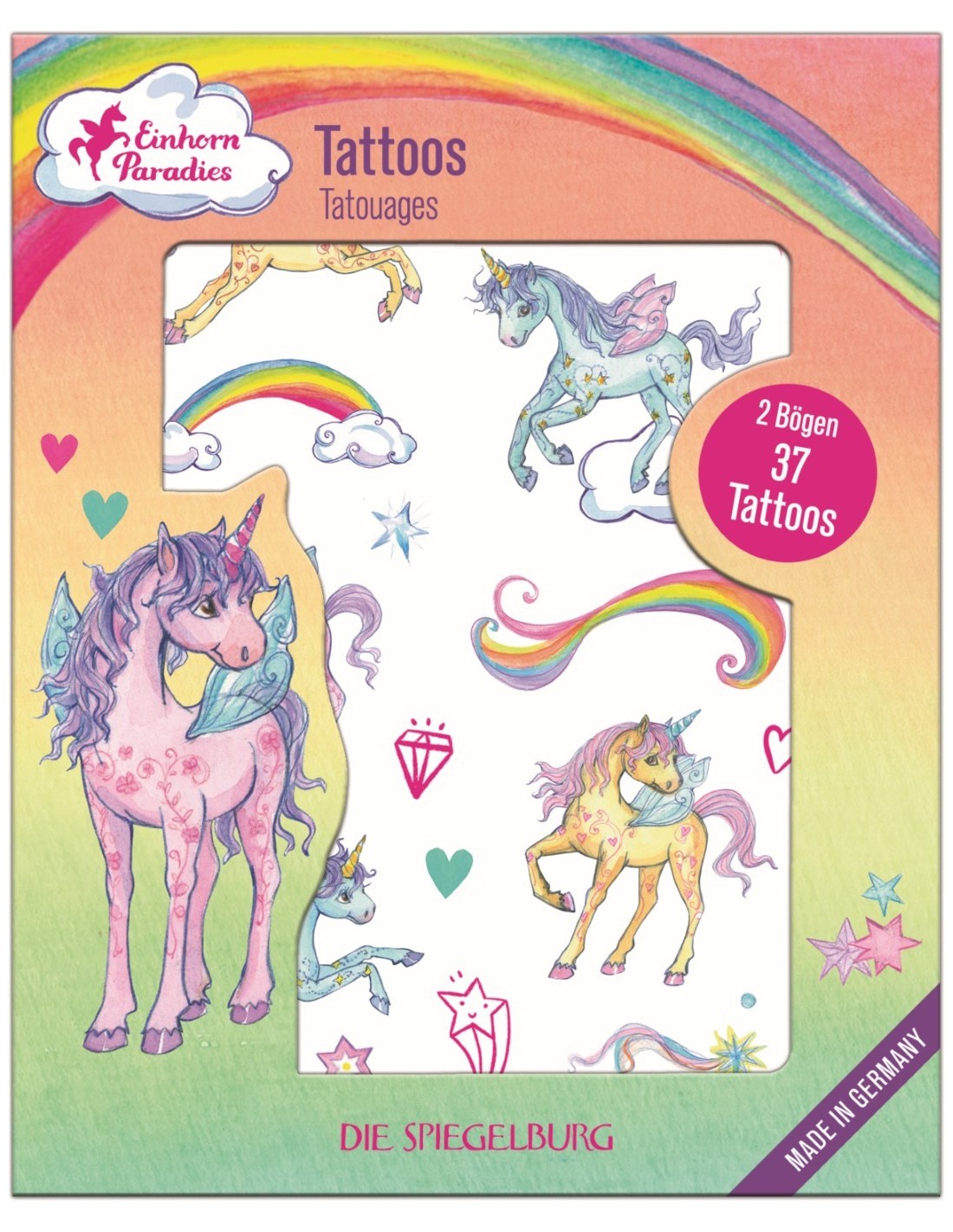 Magische tatoeages met eenhoorns! Makkelijk te gebruiken! Huidvriendelijk, met zeep te verwijderen.