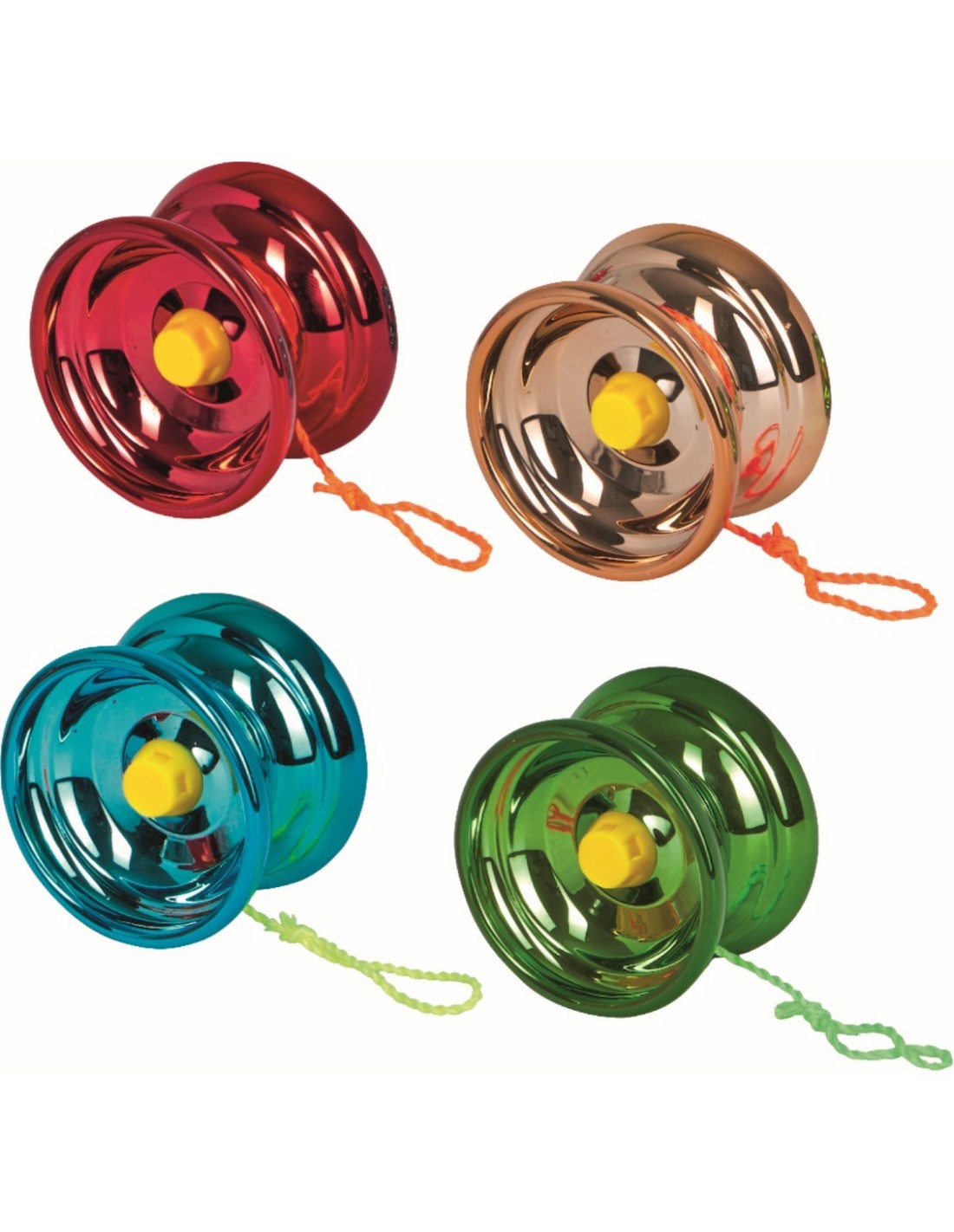 4 designs in display / gemaakt van metaal en plastic / ca. 6 x 6 x 4 cm