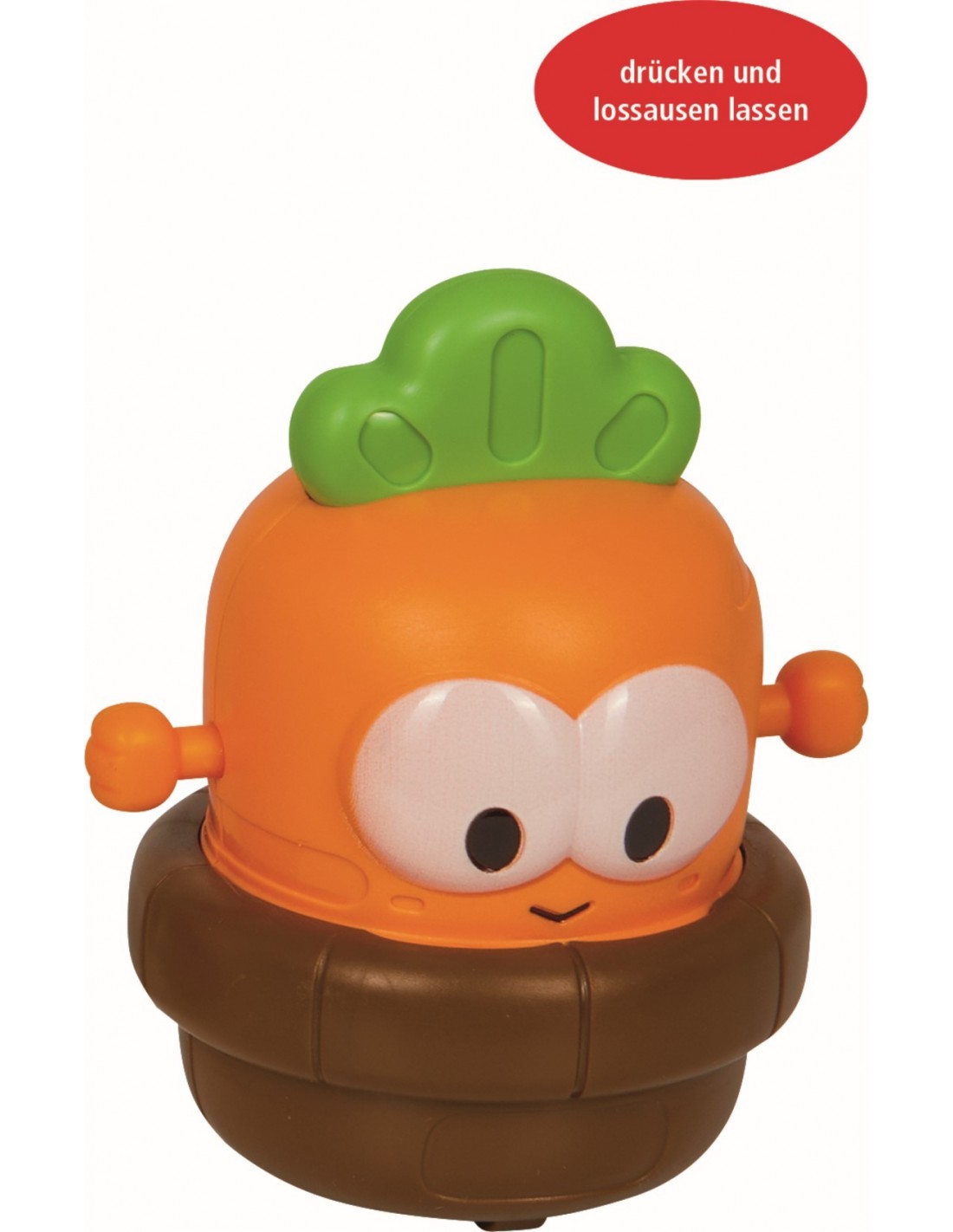 Klaar voor de start? Druk gewoon op de rug van de grappige groente en laat hem ervandoor schieten – wie wint de race? Voor die extra portie groenten per dag. Verkrijgbaar in drie uitvoeringen.