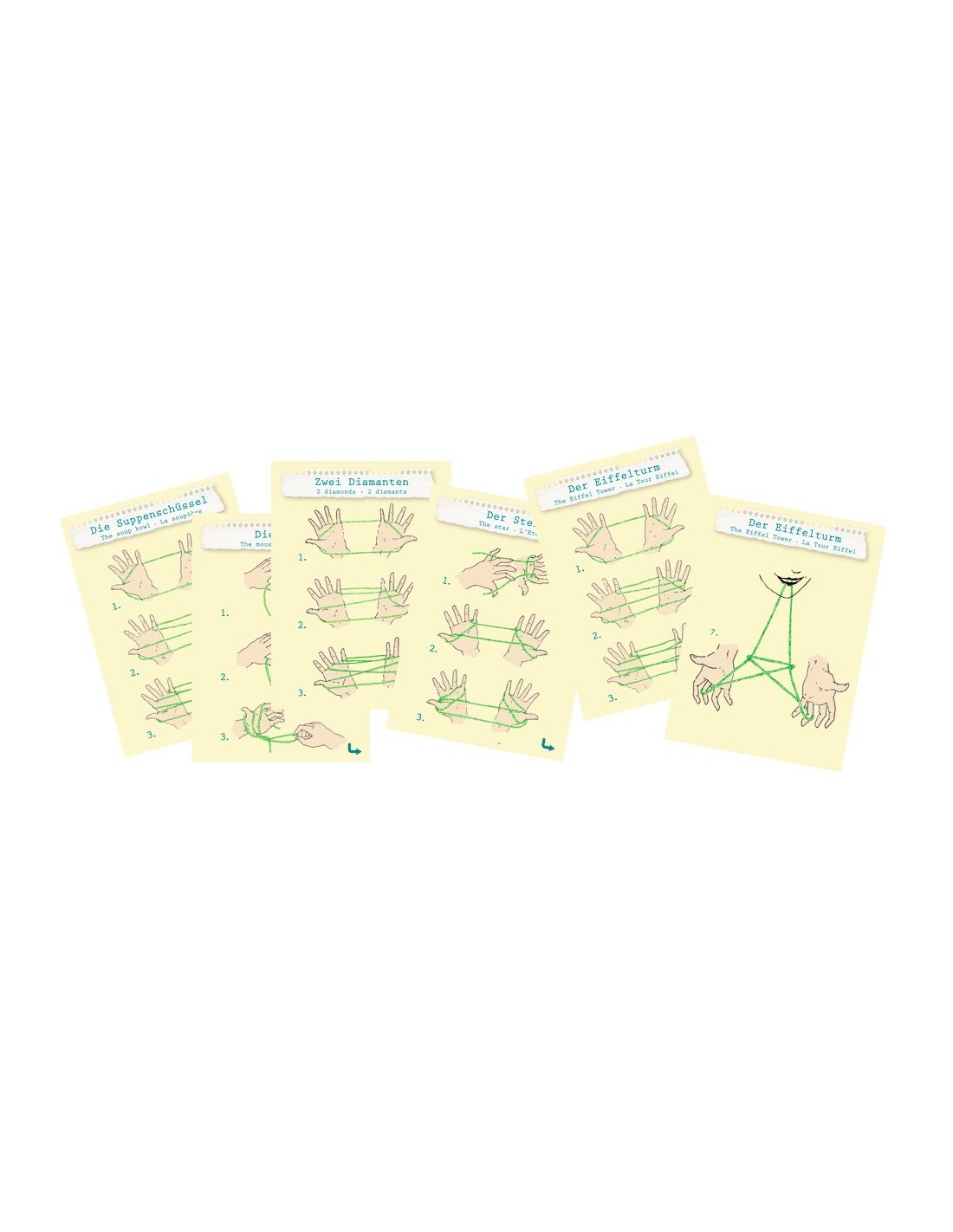 ToysTwee diamanten, een soepkom en de Eiffeltoren!? Waar vind je die nou bij elkaar? Gewoon hier in dit doosje met touwspelletjes, met gedetailleerde instructies voor zes bekende klassieke vingerspelletjes. Een leuke uitdaging voor jong en oud! Compact spelletjes, ideaal als klein behendigheidsspel voor op reis. Bij het vormen van de touwfiguren wordt niet alleen behendigheid geoefend, maar ook worden ruimtelijk inzicht en concentratie spelenderwijs gestimuleerd.
